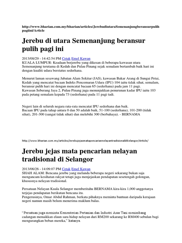 JOHOR BAHRU 22 SEPT. Sementara itubaru-baru ini kita dikejutkan dengan fenomena jerebu di Johor Bharu Seberang Jayadan ManjungPerakIndeks Pencemaran Udara telah menunjukkan bacaan yang tidak sihat. 26 Jun 2013 Semua sekolah dibuka seperti biasa.